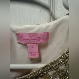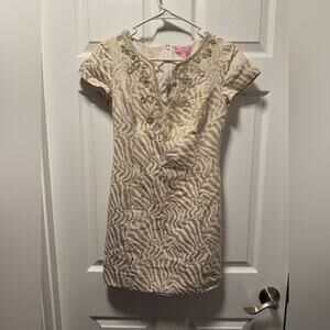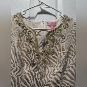 Lilly Pulitzer Milannia Gold Metallic Zebra Stripe Jacquard Shift Dress Size 2