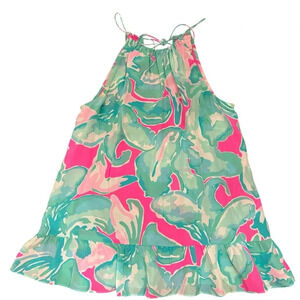 Lilly Pulitzer Millie Silk Halter Top Ruffle Hem Top