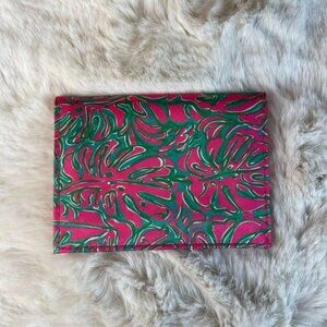 Lilly Pulitzer Mini Wallet Printed Gold Metallic Logo Pink Green Womens One Size