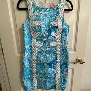 Lilly Pulitzer Mirabelle Shift Dress in Ariel Blue, Lion in the Sun print, size 6.