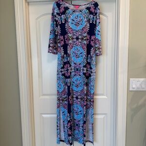 🌊 Lilly Pulitzer Morgann Maxi Dress | High Tide Navy Mermaid, 3/4 Sleeve | Sz L