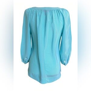 Lilly Pulitzer Moxy Blouse Small S Turquoise White Stripe 100% Silk 3/4 Sleeve Top