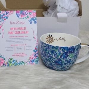 Lilly Pulitzer Mugs Set 2 Blue White Ceramic Floral Brand New Gift Anniversary