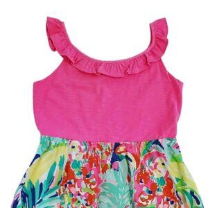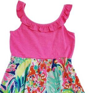 Bring vibrant resort style to your child’s wardrobe with this Lilly Pulitzer Multi Casa Banana Dress in Size 12-14. Featuring a playful mix of colors, this dress pairs a lovely pink ruffled top with a multi-colored ocean print skirt. Comfortable and stylish, it’s perfect for vacations, parties, or everyday wear.