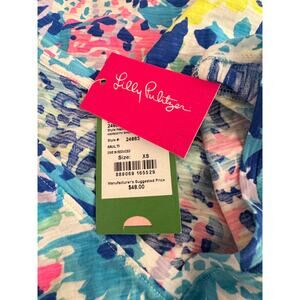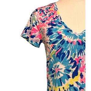Lilly Pulitzer Multi Dive V-Neck Pocket Tee Tie Dye Blue Pink size XS