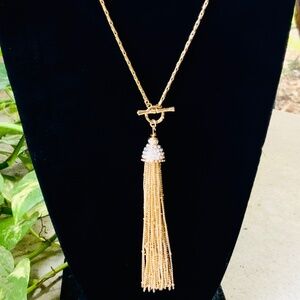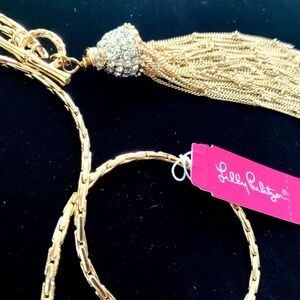 Lilly Pulitzer NECKLACE 🩷SALE🩷GOLD CHAIN TASSEL NECKLACE NWT “Fronds”TOGGLE