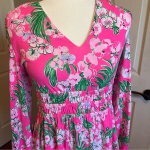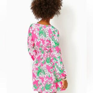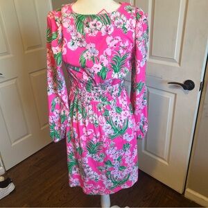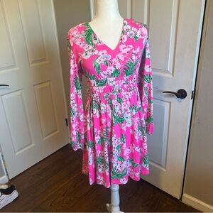 Lilly Pulitzer NEW Calla long sleeve v neck Pink and Green Floral Dress
