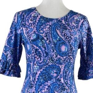 Lilly Pulitzer NEW Fiesta Stretch Dress Purple Iris Ruffle Sleeves Women Size 2