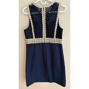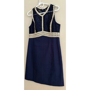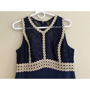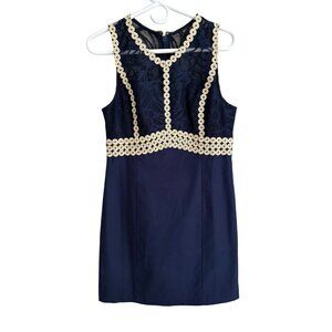Lilly Pulitzer NEW Leigh Stretch Shift Dress In Navy Blue + Gold Lace Size 6