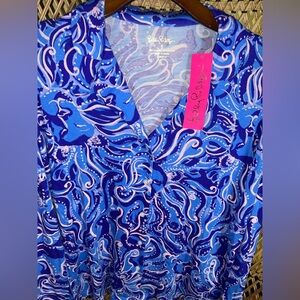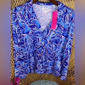 Lilly Pulitzer NWT L/S Ruffle PJ Button Up Top Whispurr Size S
