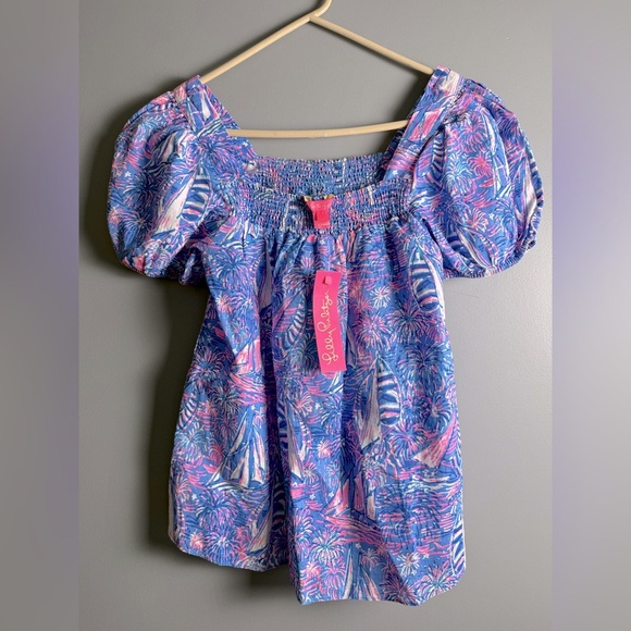 Lilly Pulitzer NWT Linen Sz 2 Keating Top Oca Blue Its a Sailabration 15" PTP