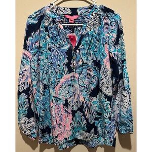 Lilly Pulitzer NWT Women's Elsa Top Size XXS - High Tide Navy Party In Paradise