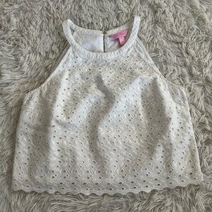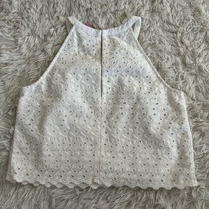 Lilly Pulitzer Nadine Eyelet Halter Crop Top - Size 0 - white - pre owned - great condition - lined - high neck crop - racerback top.