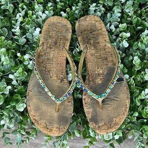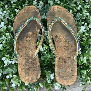 Lilly Pulitzer Naples Women's Cork Gold Sandal 8