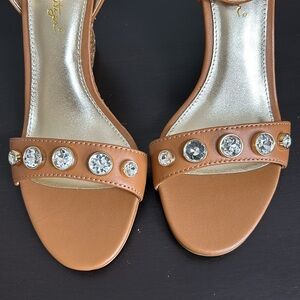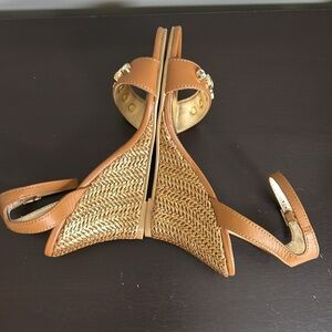 Lilly Pulitzer Natasha Wedge Shoe Leather Auburn Tan Crystal Embellished 7 NEW