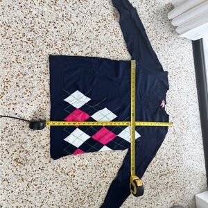 Lilly Pulitzer Navy Argyle Sweater with Pink and White