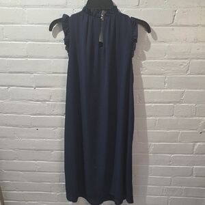 Stylish navy dress with subtle ruffle details. Ideal for versatile wear.