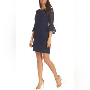 Lilly Pulitzer Navy Blue Fontaine Lace Mini Shift Dress Size Small