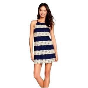 Lilly Pulitzer Navy Blue Gold Lace Annabelle Shift Dress.