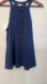 Elegant navy blue halter top. Features pleated front and button detail. Perfect for casual or dressy occasions.