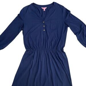 Lilly Pulitzer Navy Blue Jersey Casual Long Sleeve Midi Dress Size L