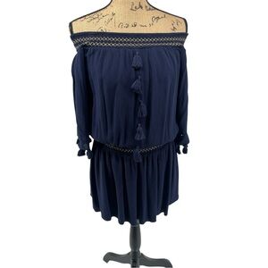 Lilly Pulitzer Navy Blue Joelle Off Shoulder Mini Short Dress Coastal Summer