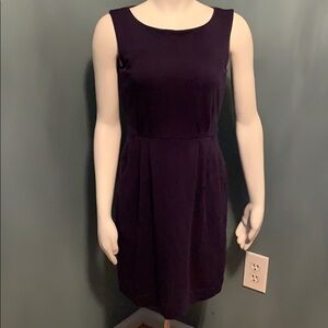 Sleeveless lined navy dress with pockets. Zipper back. Missing belt. Easy to sub any skinny belt with the dress as a replacement.