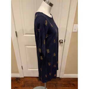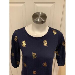 Lilly Pulitzer Navy Blue "Preston" W/Gold Foil Metallic Fish Print Dress, Size S