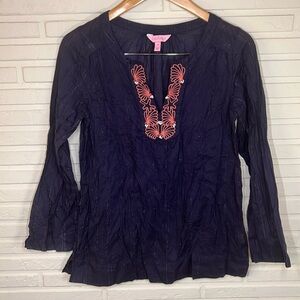 Lilly Pulitzer Navy Blue Semi Sheer Cotton Seashell Top, Women’s Size Medium