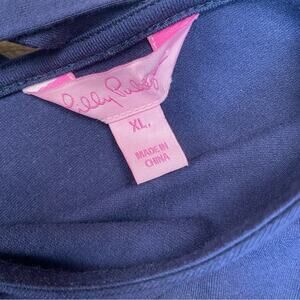 Lilly Pulitzer Navy Blue Shift Dress Women 3/4 Sleeve Round Neck Back Straps XL