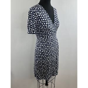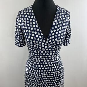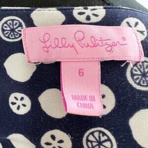 Lilly Pulitzer Navy Blue White Citrus V-Neck Short Sleeve Tie Waist Dress Size 6