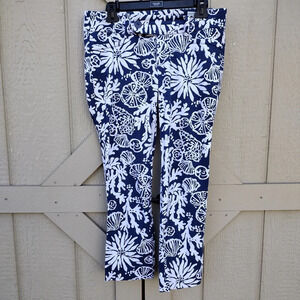 Lilly Pulitzer Navy Blue White Ocean Seashell Capri Pants Size 4