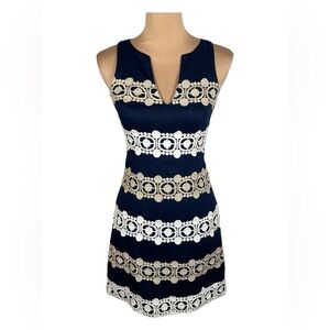 Lilly Pulitzer Navy White Gold Augusta Shift Blue with Lace Trim Cocktail Dress