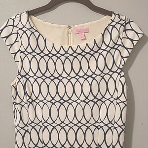Lilly Pulitzer Navy White geometric Patterned Dress Wmn's S fit and flare dress