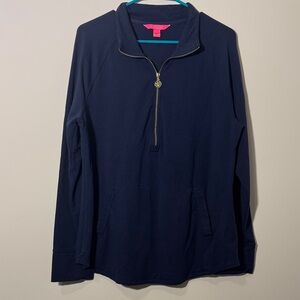 Lilly Pulitzer Navy and Gold Long Sleeve Half Zip - XL