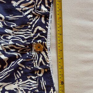 Brand new with tags, women's size 00, navy blue and white, textured with gold button closure, 4 pockets, Lilly Pulitzer Zebra Navy Printed Callahan Shorts.