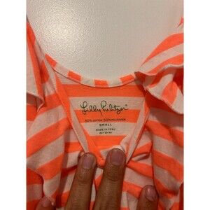 Lilly Pulitzer Neon Orange White Knit Striped Cotton Sundress Casual Size Small