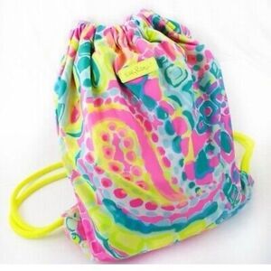 Lilly Pulitzer Neon Colorful Cinch Drawstring Sport Beach Swim Bag