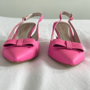 Lilly Pulitzer Kat Kitten Heel in Pop Pink Slingback Bow Heels, Size 8