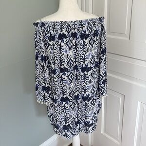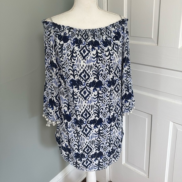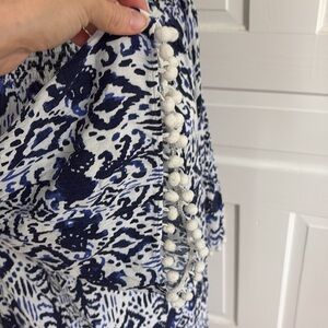 Lilly Pulitzer Nita Dress pompom blue white off shoulder summer cruise small