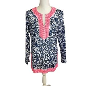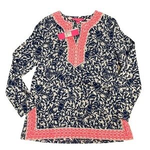 Lilly Pulitzer Ocean Cove Long Sleeve Tunic Top Oyster Bay Blue Krillin It. Size S