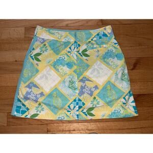 Lilly Pulitzer Octopus Patchwork Print Skirt Size 4 Blue Green Yellow
