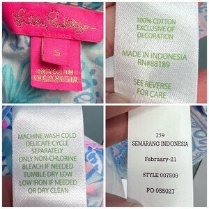 Crisp, lightweight cotton with a classic off-shoulder neckline and bright Lilly paisley print in pink and blue. Perfect for warm weather or vacation wear.