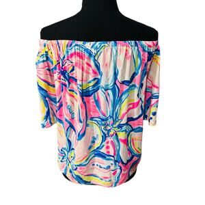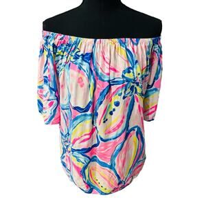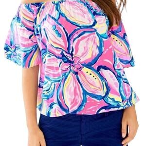 Lilly Pulitzer Off The Shoulder Sain Top in Pink Sunset - Size Small