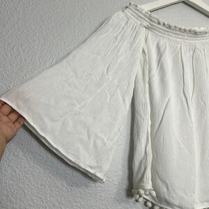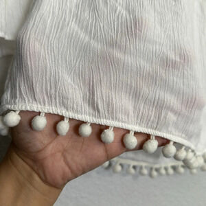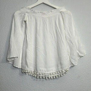 Lilly Pulitzer Off the Shoulder White PomPom Peasant Boho Top Womens Size XSmall