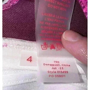 Make a splash in this Lilly Pulitzer Omry Bandeau Swim Top in Cerise Pink Pattern Play. With a strap and buckle accent, this halter-style top is perfect for a day at the beach or pool. The top is made of a comfortable nylon and spandex material and is padded with adjustable straps for a custom fit. Hand wash only to keep it looking its best. This top is brand new with tags and is a regular size 4.