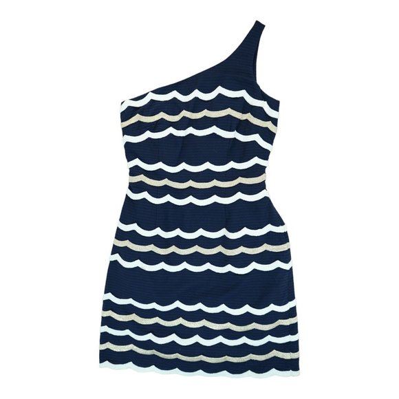 Lilly Pulitzer One Shoulder Blue White Gold Dress Size 0 MSRP $298
