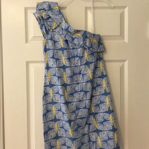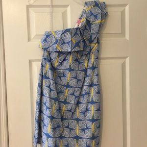 Lilly Pulitzer one shoulder butterfly dress. Size two. Only worn twice. Like new!
