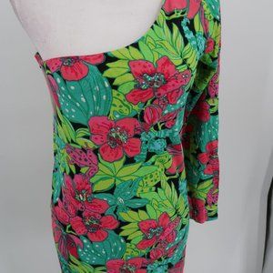 Lilly Pulitzer One Shoulder Floral Bodycon Dress Size Large