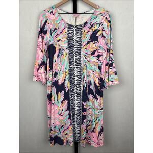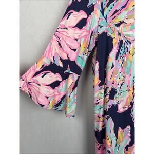 Lilly Pulitzer Ophelia Dress Women's Large 3/4 Bell Sleeves Stretch Tropical